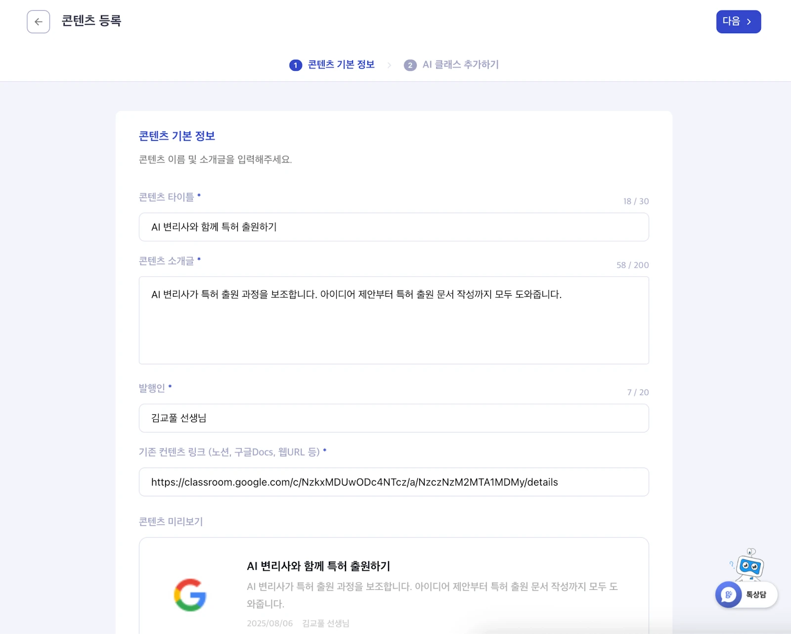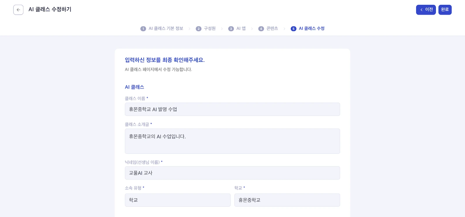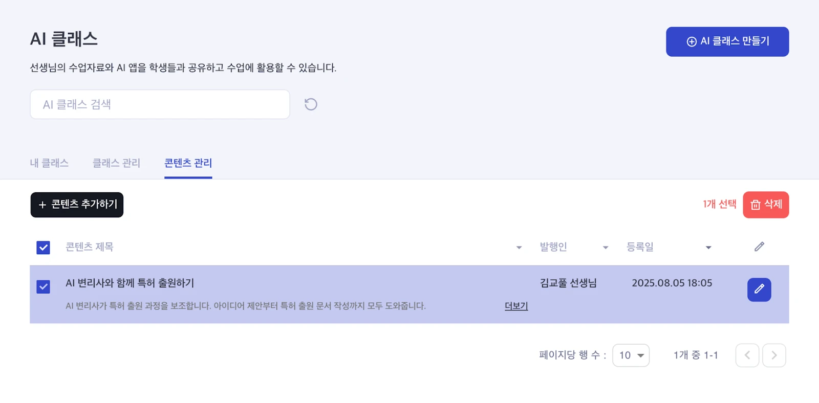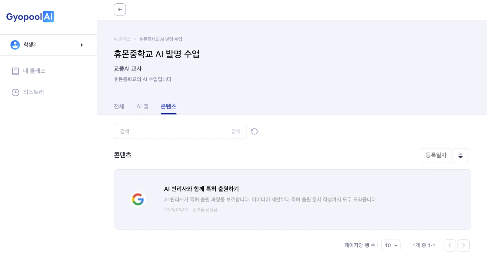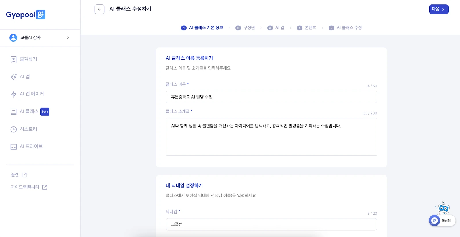 👀 AI 리터러시 모니터, 여기서 확인하세요! “교풀AI 리터러시 모니터링”는 학생들이 언제, 어떤 AI 앱을 사용했는지를 한눈에 보여주는 참여도 추적 입니다. AI 활동 모니터링 기능을 통해, 교사는 학생들의 AI 활동 내용을 직관적으로 파악하고 올바른 AI 사용 방향을 지도함으로써 비교육적 활동을 사전에 방지할 수 있습니다. 선생님은 이 기능을 통해 학생들의 AI 앱 실행 횟수 활동 시간대와 활용 내역을 상세히 확인할 수 있습니다. 예를 들어, 국어 수업에서는 학생들이 ‘에세이 작성 지원 AI’를 얼마나 활용했는지, 수학 수업에서는 ‘문제 풀이 AI’를 언제, 몇 번 사용했는지를 즉시 확인할 수 있습니다. 이제 학생들이 단순히 “참여했는지” 확인하는 것을 넘어, AI를 어떻게 활용하고 학습에 적용하는지까지 데이터로 살펴보세요. AI 리터러시 모니터가 선생님의 수업 운영을 더 투명하고 스마트하게 만들어 드립니다. 🚀 1️⃣ AI 클래스 생성하기 먼저 학생들과 함께할 AI 클래스를 만들어야 합니다. AI 클래스 생성 방법은 아래 가이드를 참고하세요. 2️⃣ 클래스 관리 탭으로 이동 생성된 AI 클래스 화면에서 「클래스 관리」 탭을 클릭합니다. 3️⃣ 리터러시 모니터 열기